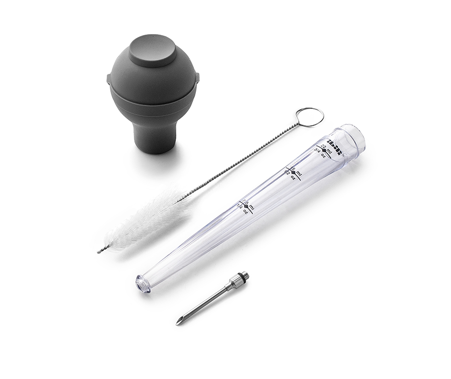 Allows all types of sauces, marinades and reductions to be extracted, dispensed and injected in a convenient, highly precise manner thanks to the graduated marks on the tube and a highly accurate dosing nozzle.