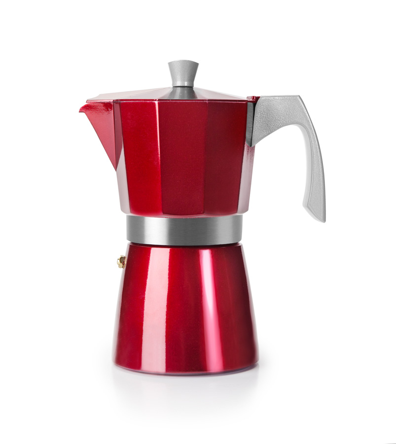 Espresso coffee maker Evva. Cast aluminium and stainless steel full induction base. Maximum energy efficiency on induction hobs. Heavy and resistant.