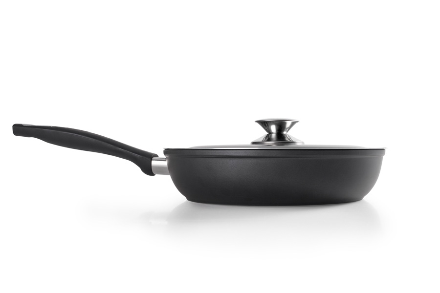 The New Induplus frying pan is made of induction ready aluminium and has a Bakelite soft touch handle. It's specially designed for vitro-ceramic and induction, but it's compatible with all cooktops. Because it has a full induction diffuser bottom, it heats up quickly and evenly to save energy. It has 2 layers of a high quality, PFOA free non-stick coating. Its 5 mm thickness makes it a DURABLE and NON-DEFORMABLE piece. It has a lid that keeps Spanish omelettes from sliding around when flipping them and makes it easier... and cleaner,)