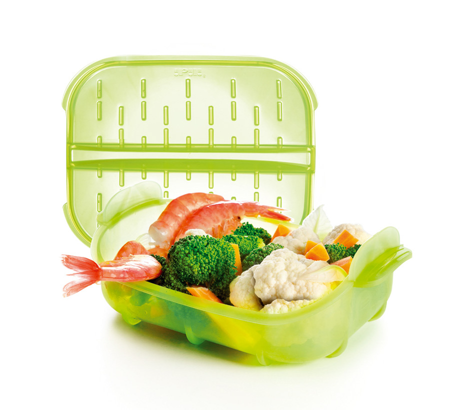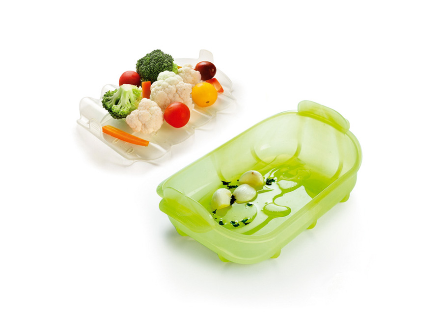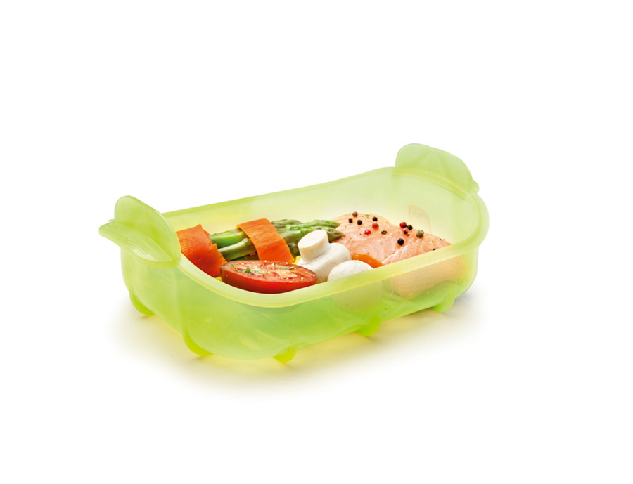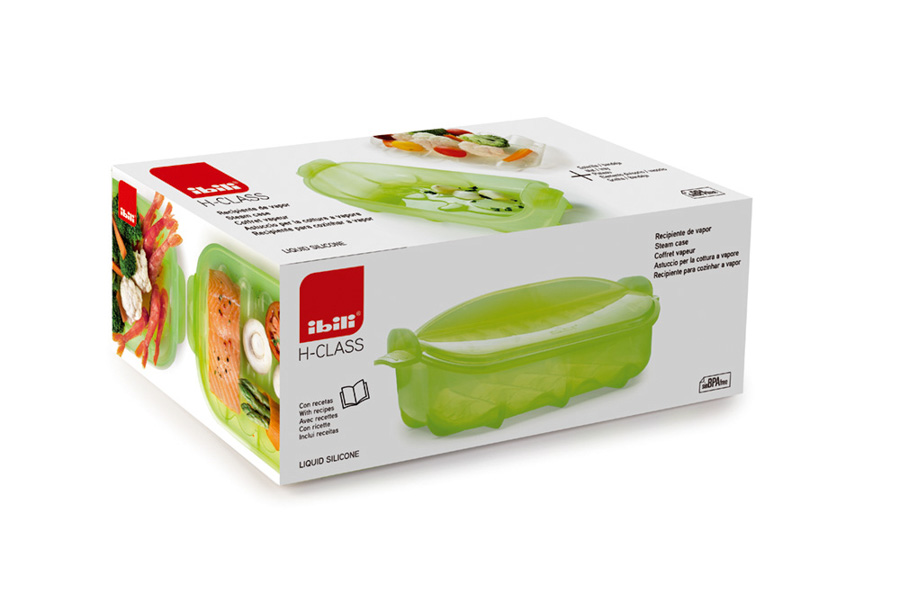 Recipiente de vapor H-Class. Explora las oportunidades que ofrece la cocina con microondas con el recipiente de vapor de Ibili.Descubre los beneficios de esta forma de cocinar todo tipo de platos, rápida y sencilla, con unos resultados excelentes y muy saludables.Y para ponertelo más fácil, incluye un librito con consejos y recetas que te serán de gran ayuda. Fabricado en silicona lóquida, cumple todos los certificados sanitarios y no absorbe ni aporta sabores u olores al alimento.