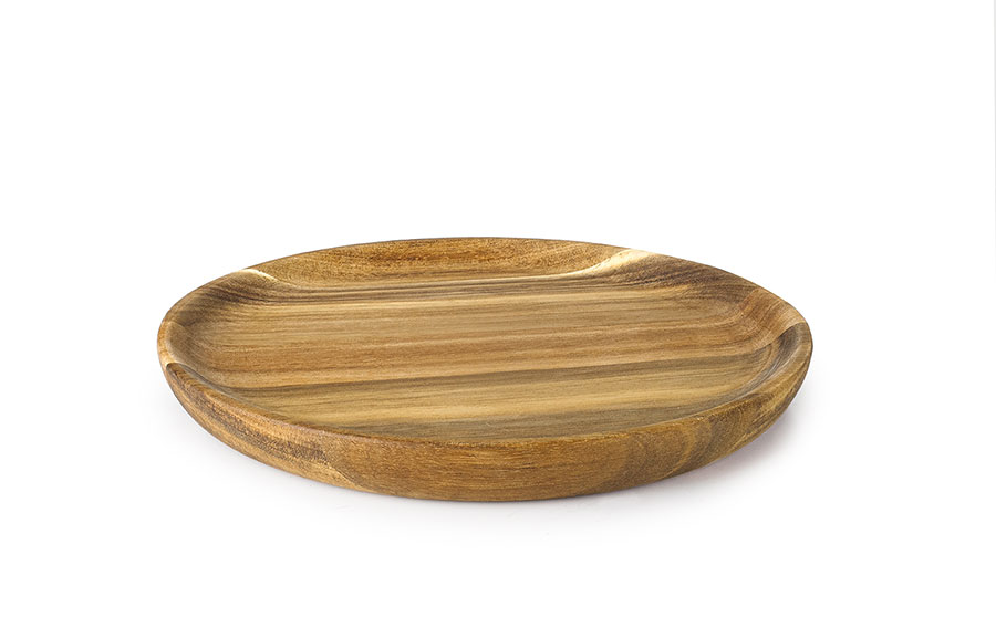 This acacia wood plate is available in 7 sizes, ranging from 16 to 28 cm in diameter.