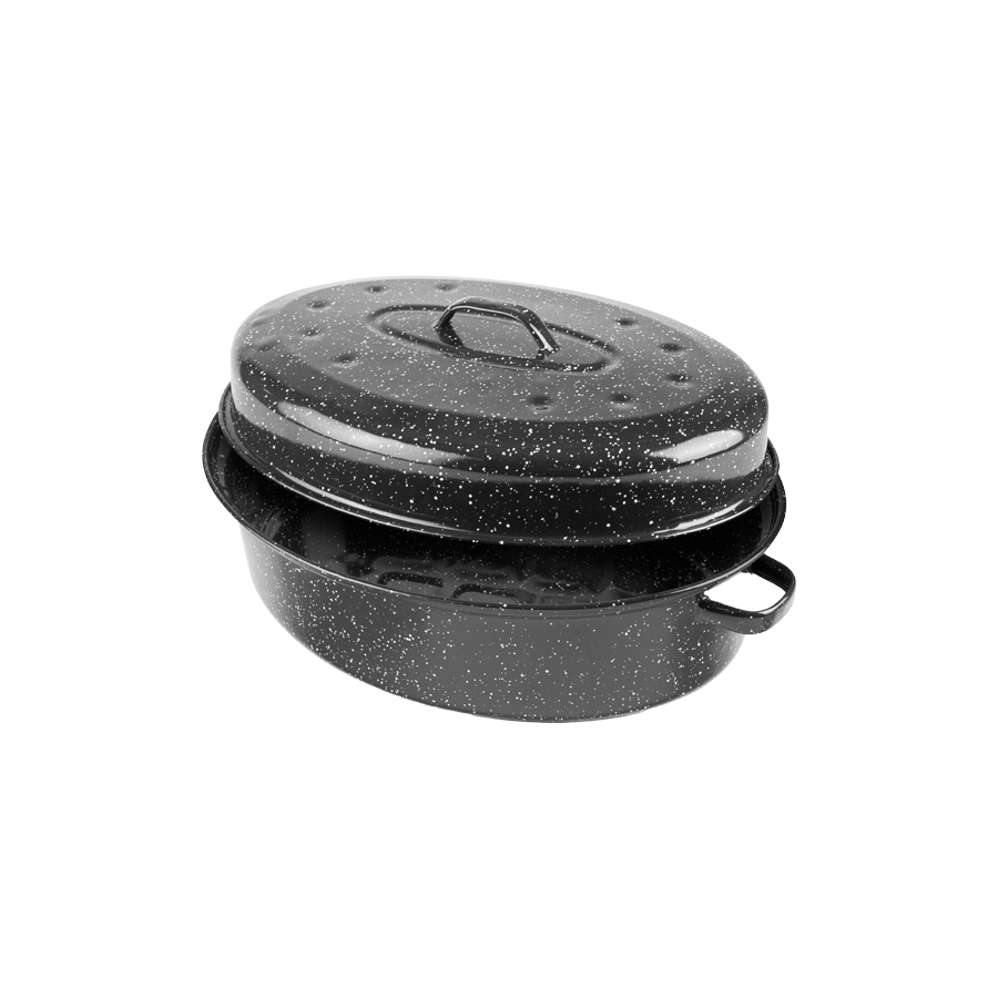 It's made of vitrified enamelled steel and it's compatible with electric, gas and vitro-ceramic cooktops (not compatible with induction). It's perfect for cooking meat or vegetables in the oven and the food won't stick. It includes a lid so meat will cook in its own juice.