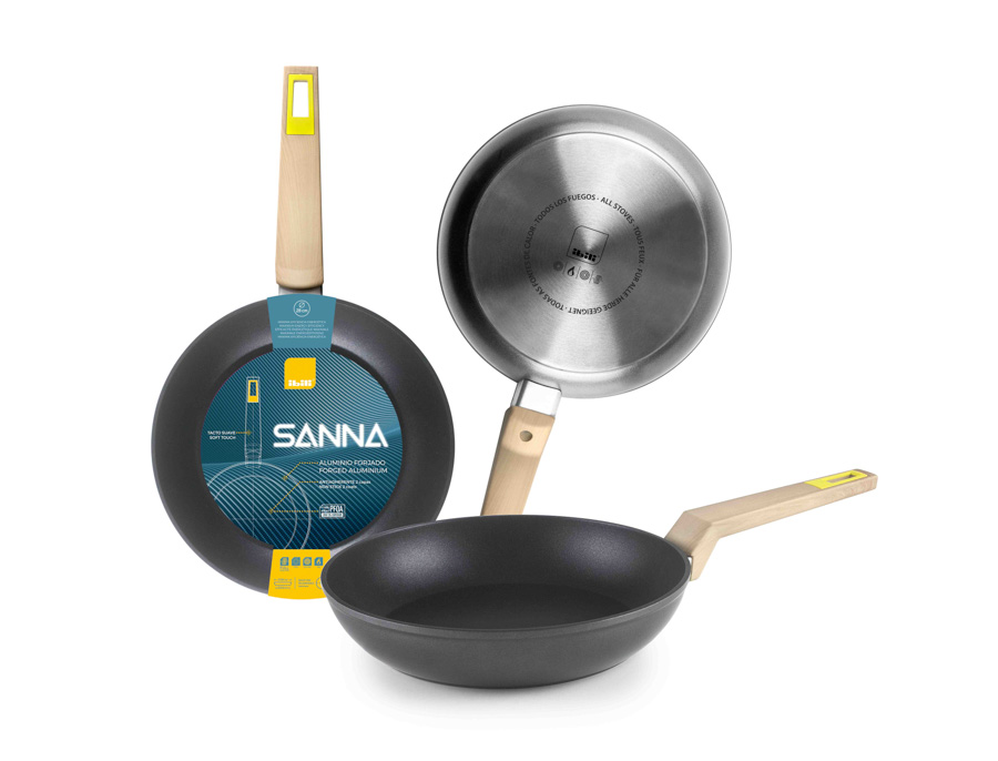 The Quarzo frying pan is made of forged aluminium and has a riveted stainless steel handle. It's specially designed for induction, but it's compatible with all cooktops. Because it has a full induction diffuser bottom, it heats up quickly and evenly to save energy. It has a 3 layer PFOA free non-stick coating that is harmless to human health and environmentally friendly. Its 4-5 mm thickness makes it a DURABLE and NON-DEFORMABLE piece.