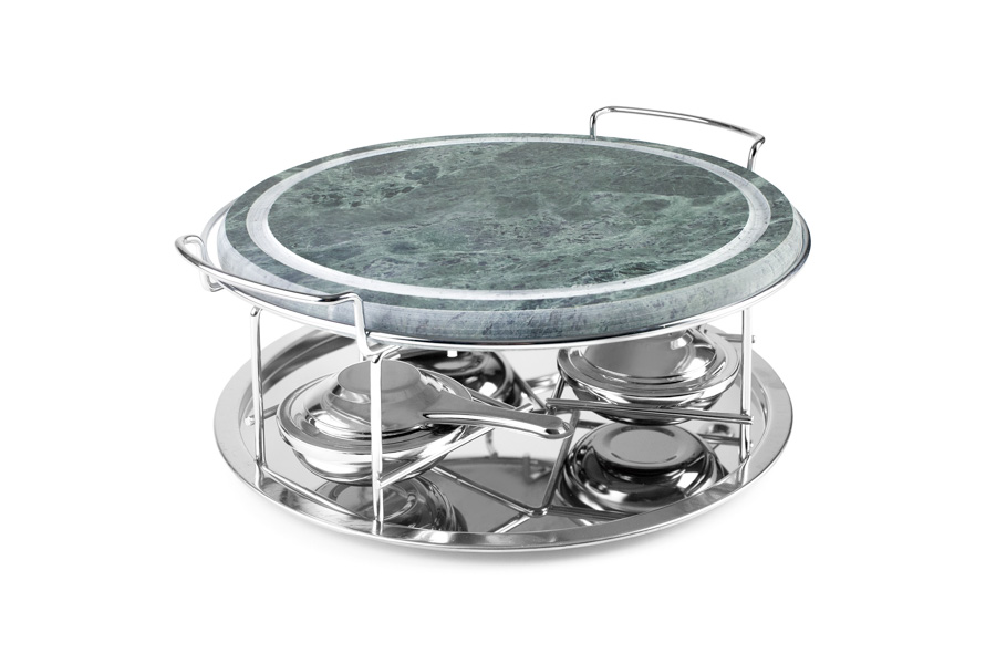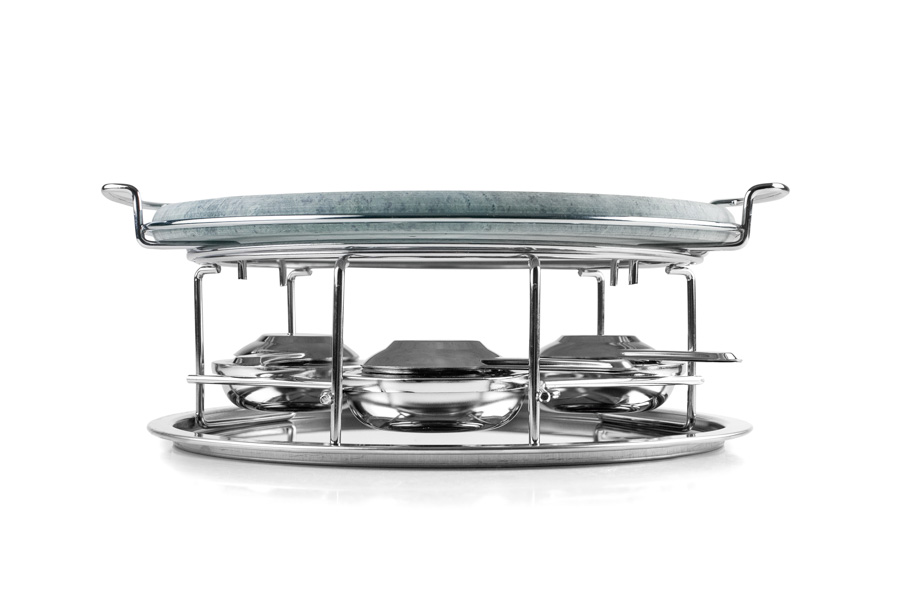 Ideal para asar numerosos alimentos como carne, pescado, verduras, pan...Incluye piedra con soporte, bandeja y 3 lamparillas. Acero inoxidable + piedra. Apto para todo tipo de fuegos e inducción.