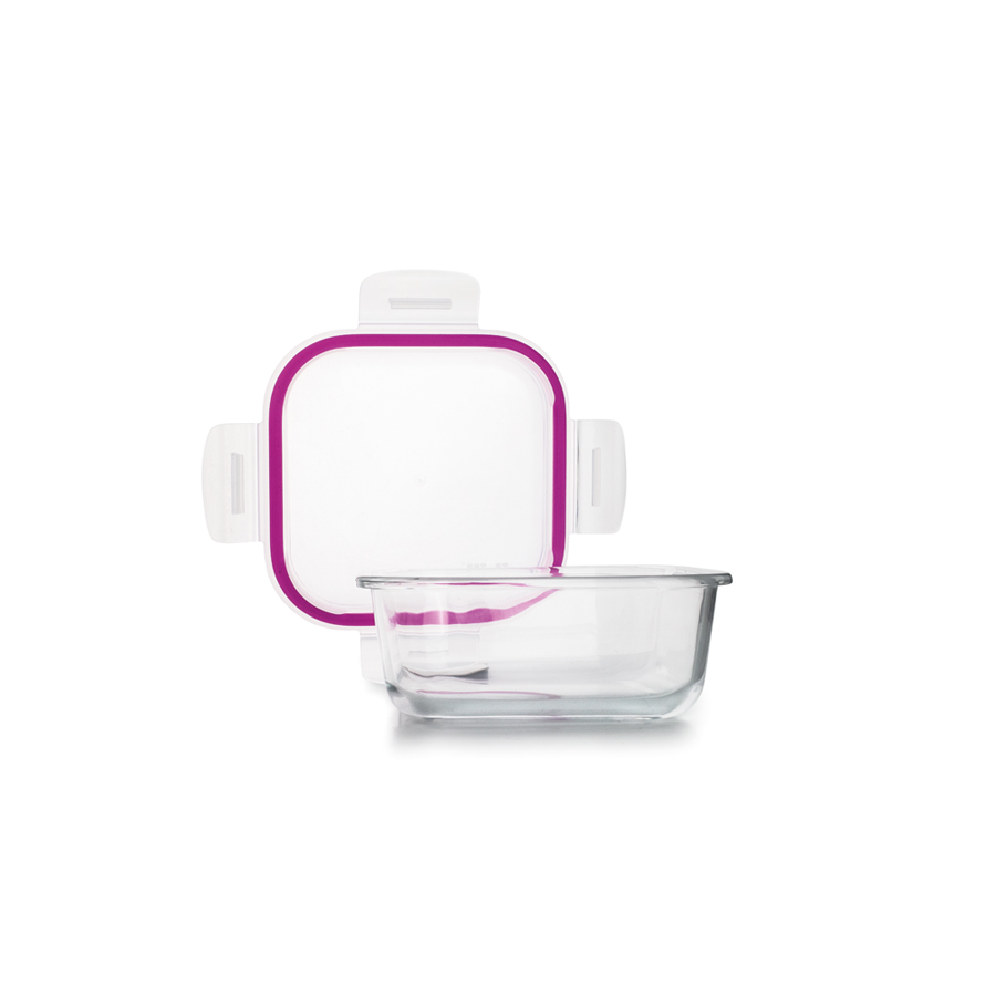 Container with a tempered glass base.