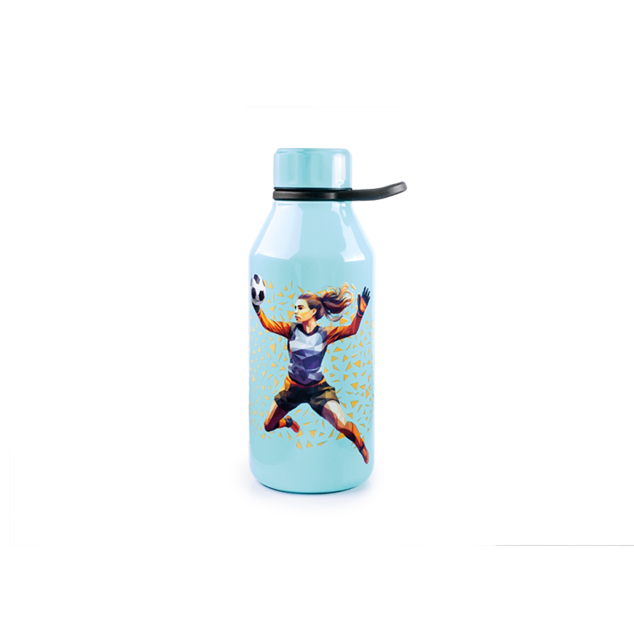 Kids bottle with a fun football design.
