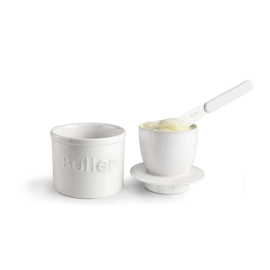 The French butter keeper, traditionally known as a beurrier à eau, is a classic system designed to keep butter at room temperature while maintaining a soft, creamy texture that is always ready to spread.
