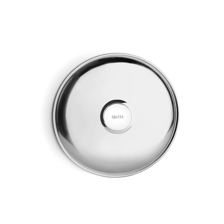 Lid made of stainless steel, designed to flip omelettes safely and easily.