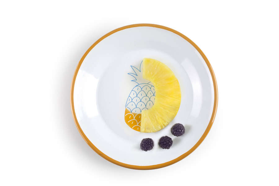 GASTRODESSIN vitrified enameled steel tableware, with different designs on each piece, designed exclusively to serve different foods.