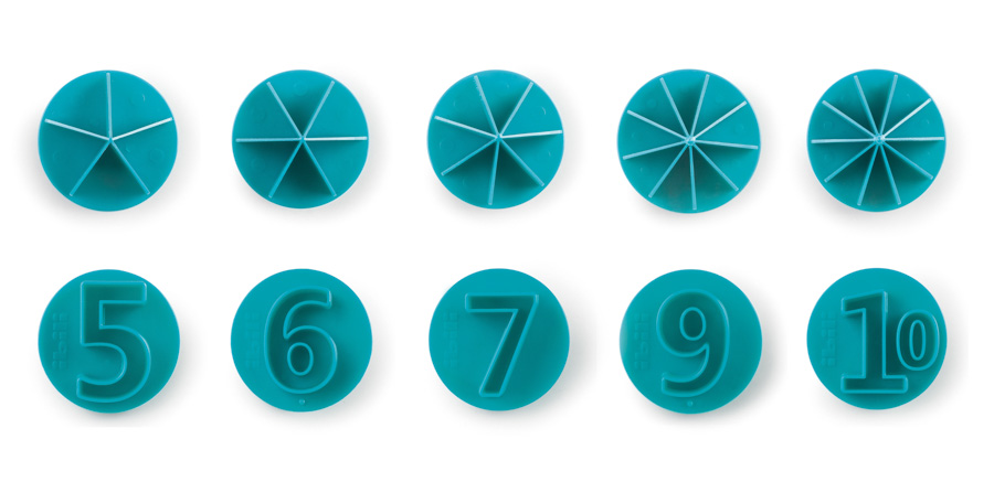 The five markers you see on this set are the solution for making the most difficult divisions (5, 6, 7, 9 and 10) when you're serving cake, sponge cake, omelettes or any other kind of dish.