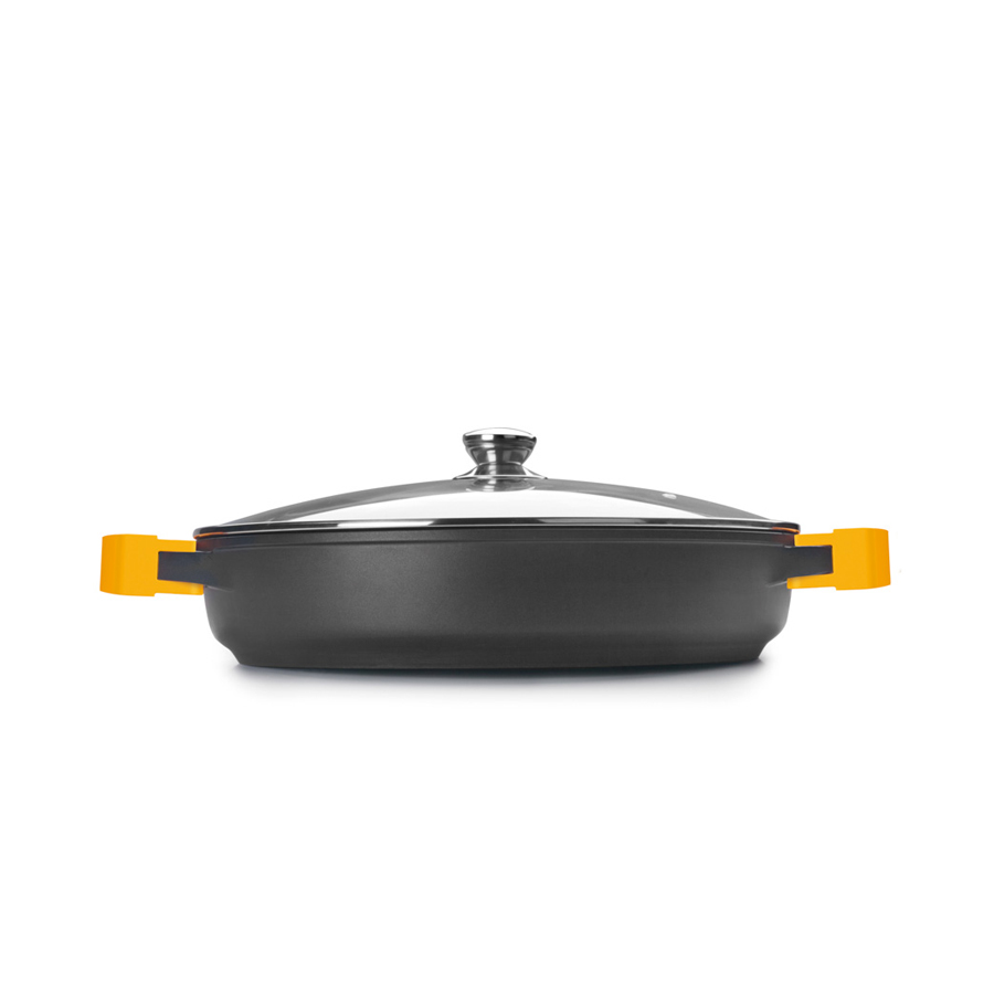 La Guisera con Tapa Evolution está fabricada en aluminio fundido con un espesor de 7 mm que hacen de ella una pieza DURADERA e INDEFORMABLE.