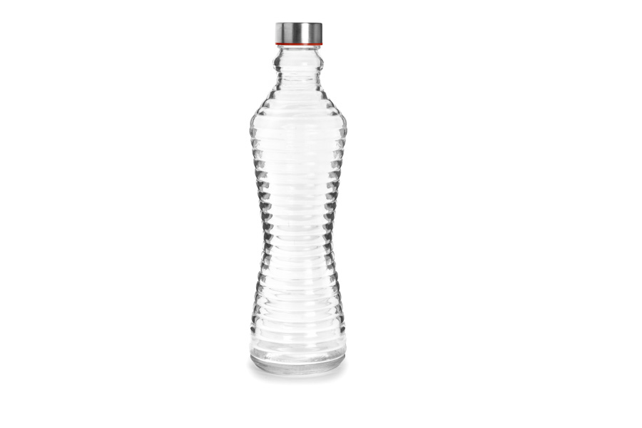 Cristal. Tapa inox.Esta botella reutilizable es perfecta para sustituir las botellas de plástico de usar y tirar, contribuyendo además a mejorar el medioambiente.Botella transparente con un elegante diseño.
