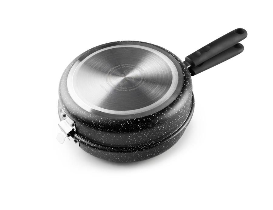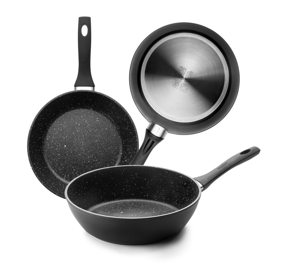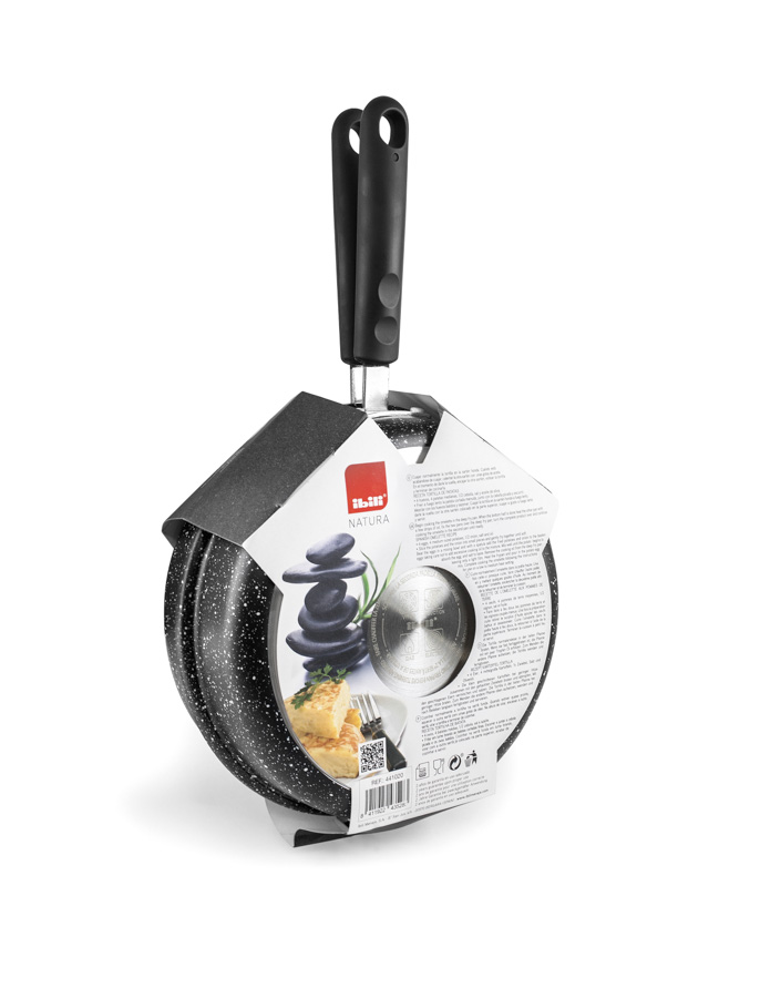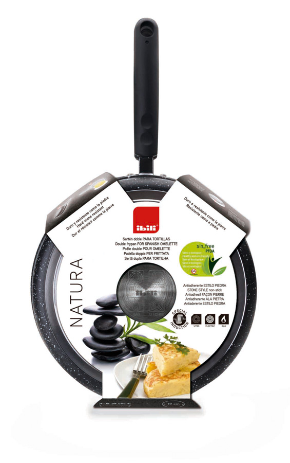Fabricada en aluminio, es apta para todas las cocinas. Su fondo Full induction garantiza la máxima eficiencia energética. Antiaderente estilo piedra libre de PFOA y baja en emisiones de Co2. Material resistente y ligero que facilita el movimiento del volteo de la tortilla sin incidentes.