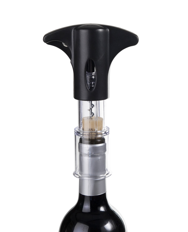 Sacacorchos giratorio cerrado. Sacacorchos giratorio con espiral antiadherente inox y cuerpo de plástico. Provisto de corta Cápsulas . Muy útil y práctico.
