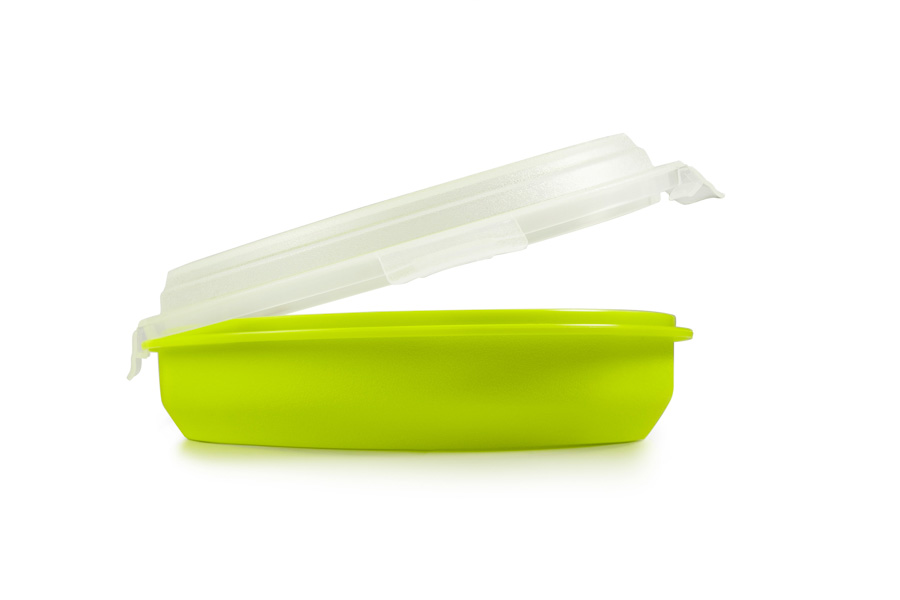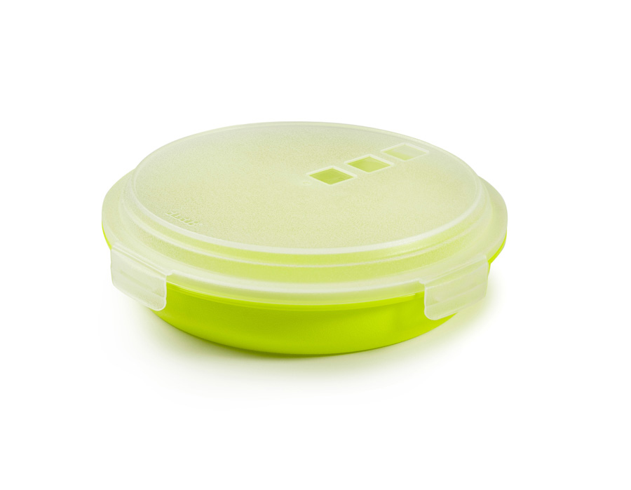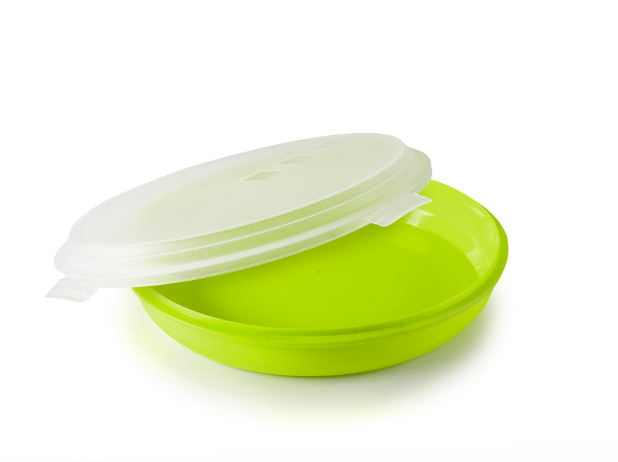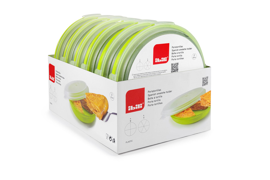 Perfecto para transportar tortillas hechas en sartenes de hasta 22cm de diámetro. Marcas radiales en el contorno para dividir la tortilla en 8 o 10 porciones iguales. Tapa con cierres seguros para que no se abra durante el transporte. Plástico