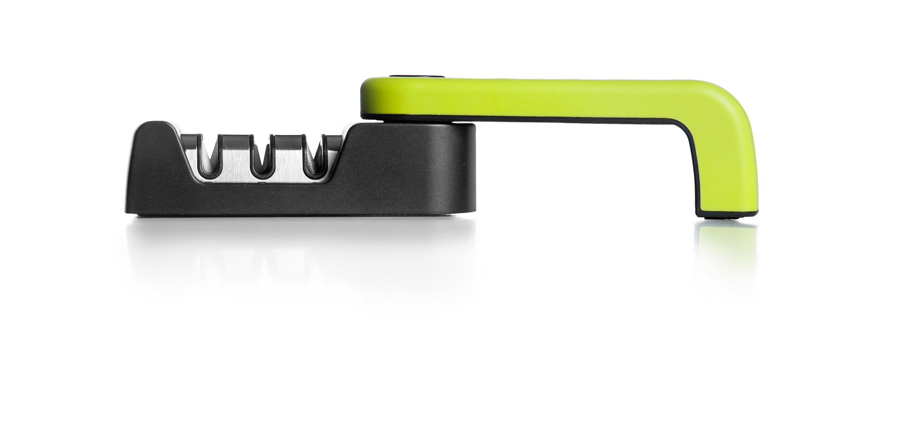 Afilador plegable diseño único con asa giratoria.Elegante, compacto y práctico.fácil de usar, se pliega para su almacenamiento. Mango ergonómico para un manejo fácil y seguro. La base antideslizante proporciona estabilidad y seguridad.Inox + ABS.