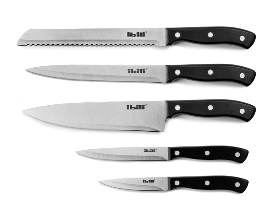 Juegos de 5 cuchillos Class.Juego de cuchillos compuesto por taco fabricado en bambu y 5 cuchillos para diferentes usos en la cocina.Los cuchillos son de acero inoxidable y tienen el mango de plástico Con este juego tus cuchillos de cocina estará,n siempre accesibles y los podrás guardar de manera segura, ordenada, limpia. Guardar los cuchillos en un taco, evita accidentes. La hoja el cuchillo queda perfectamente protegida.