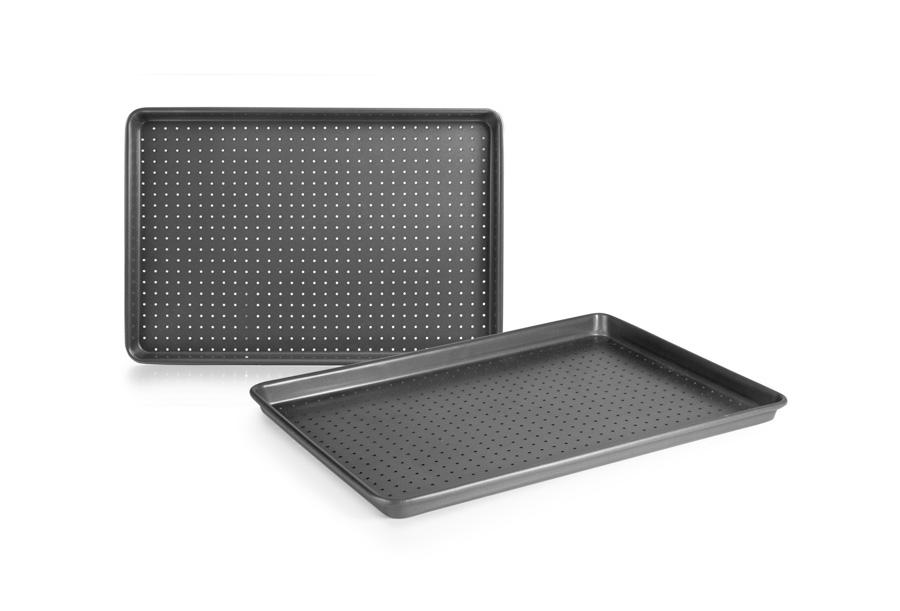 Moldes perforados que permiten la circulación del aire y como resultado obtienen un horneado más crujiente.