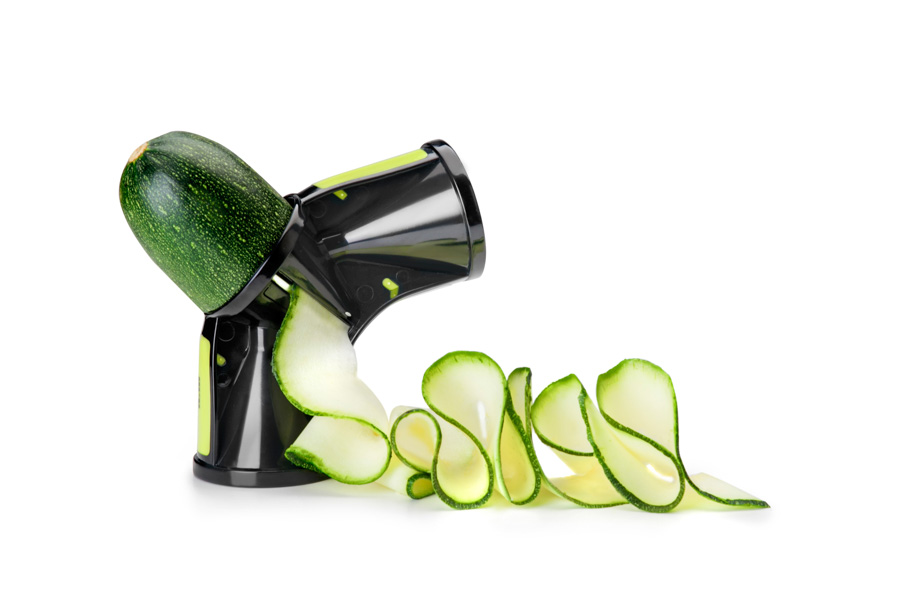 Sacapuntas triple. Inox+Plastic. Cortador de verduras con tres cuchillas: 1.- Corte de verduras en espiral. 2.- Corte de verduras en juliana fina (espagueti fino)3.- Corte de verduras en juliana gruesa (espagueti grueso) Valido para calabacines, zanahorias, patatas, calabaza etc...
