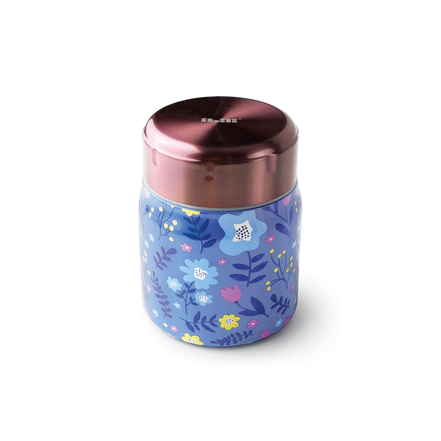Termo para sólidos fabricado en acero inoxidable, ideal para mantener la temperatura de los alimentos.