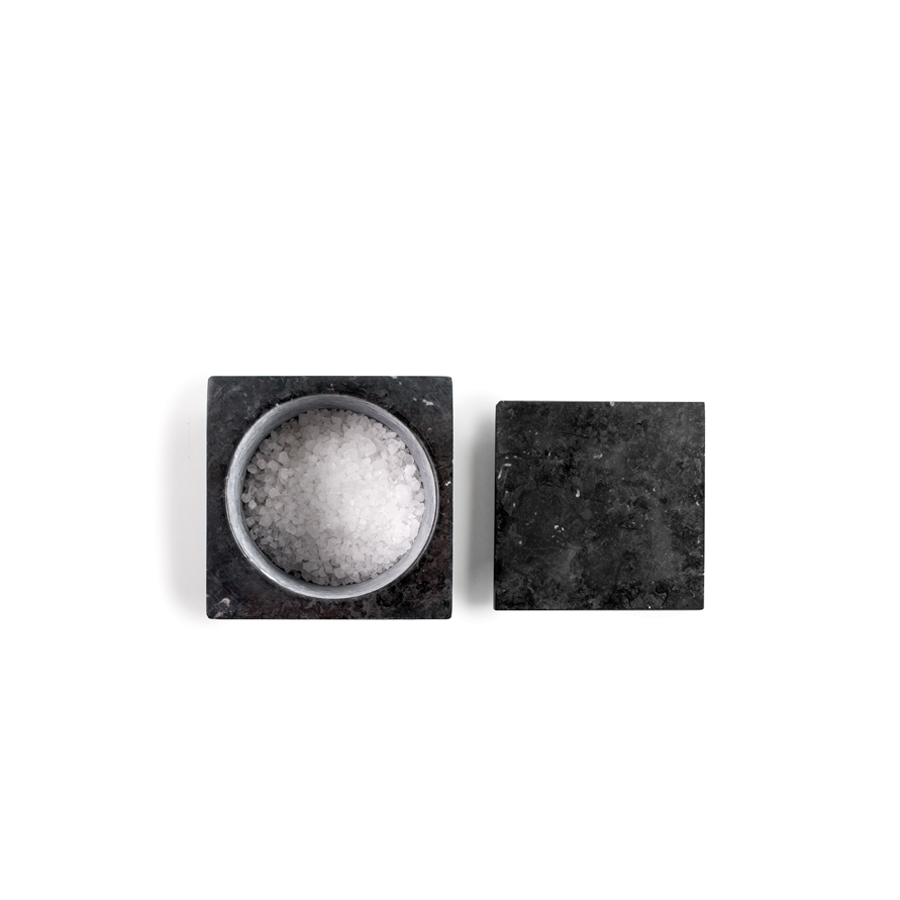 Salero de mármol robusto y decorativo, ideal para cualquier cocina elegante y funcional.