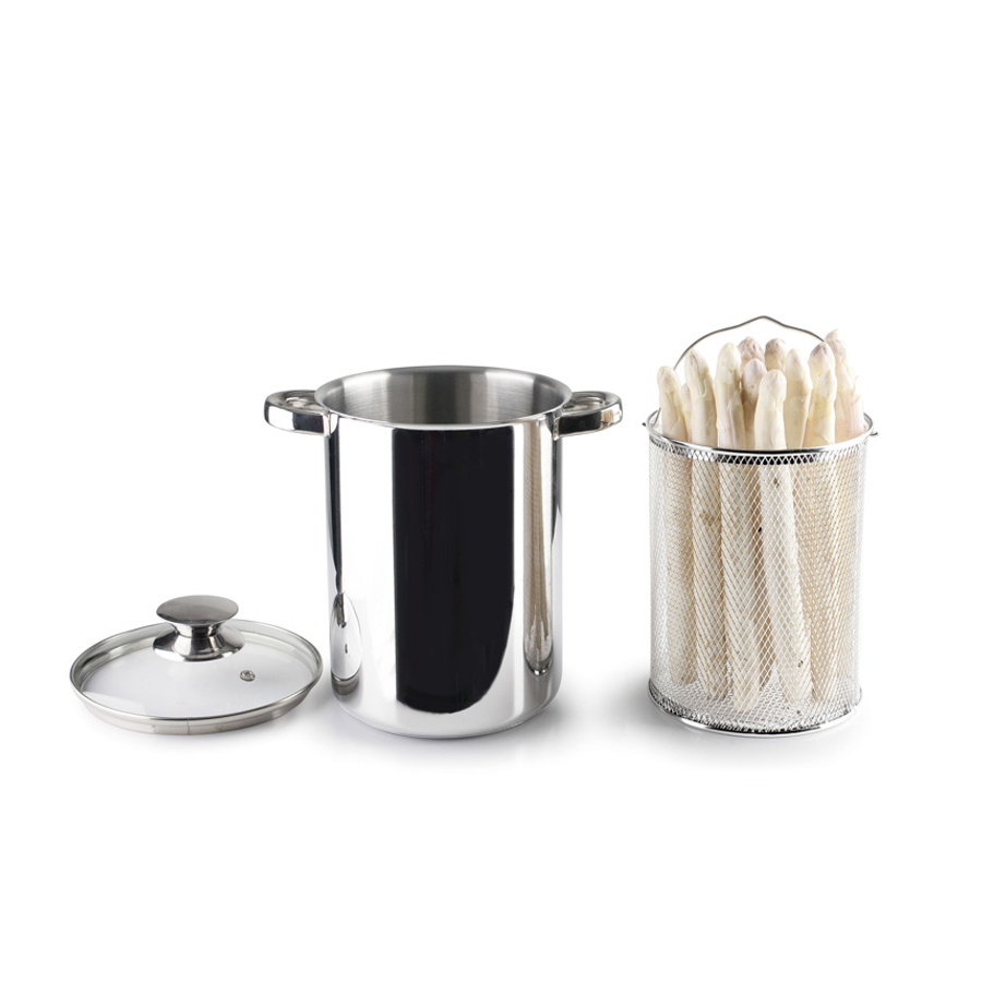 Olla fabricada en Acero inoxidable y tapa de cristal con capacidad para 4 litros.