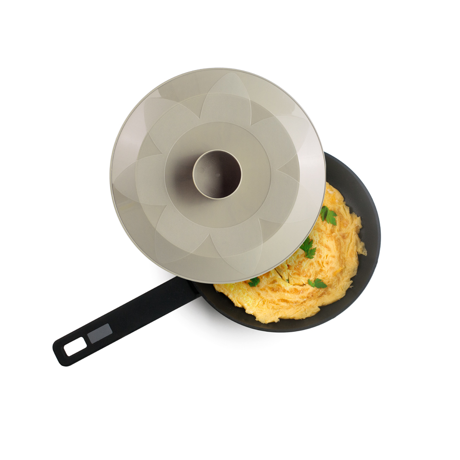 Accesorio práctico para dar la vuelta a la tortilla de forma segura y sin riesgos.