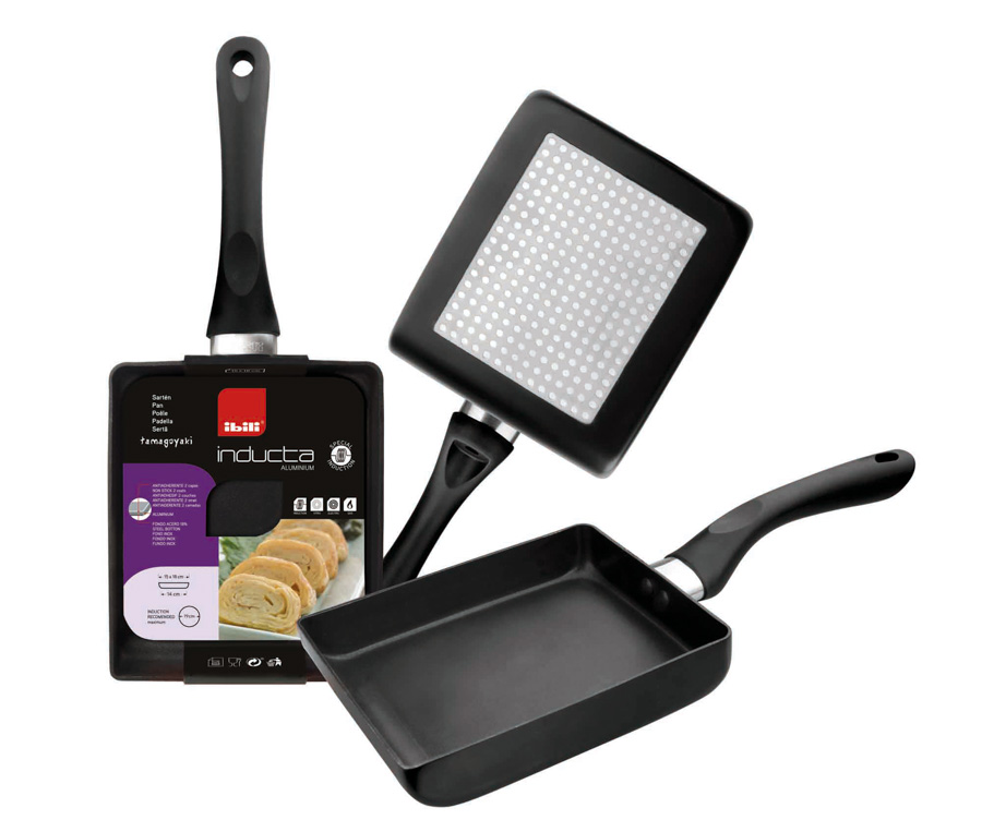 Sartén rectangular tricapa sin antiadherente, especial para elaborar el Tamagoyaki, una tortilla enrollada tradicional de origen japonés que admite tantas recetas como sabores salados y dulces para disfrutarla.