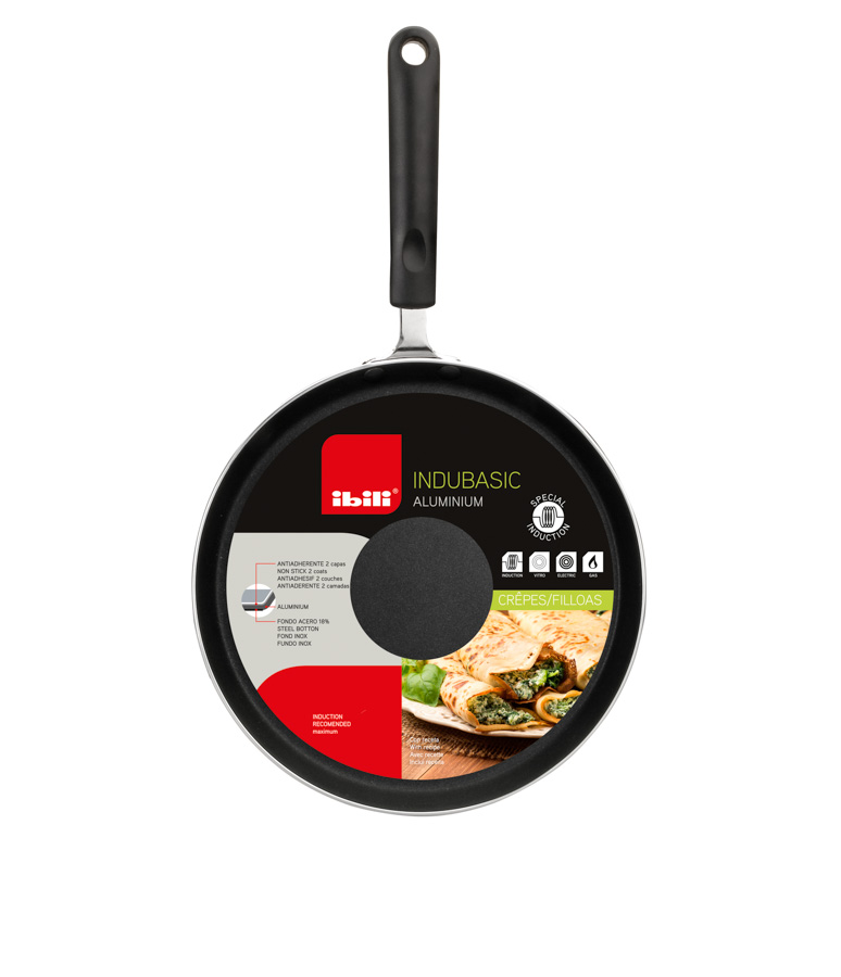 La poêle à crêpes Indubasic est fabriquée en aluminium pour induction avec un manche en bakélite. Spéciale pour vitrocéramique et induction et adaptée à toutes les cuisinières. Revêtue de 2 couches d’antiadhésif de haute qualité libre de PFOA et à faible émission de Co2.