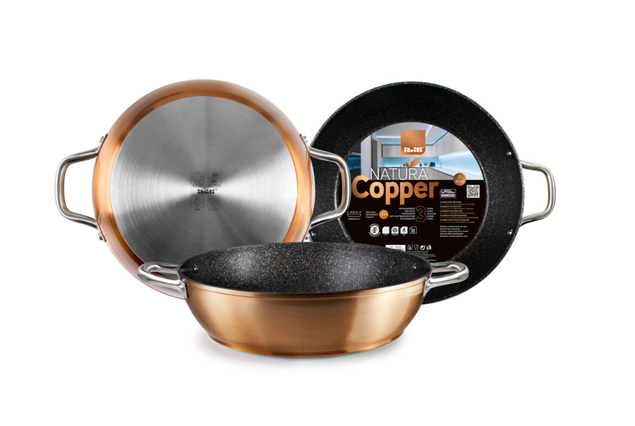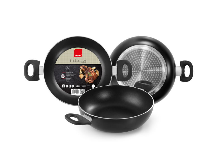La poêle creuse avec anses Inducta est fabriquée en aluminium pour induction de haute qualité, spéciale pour induction et convient à toutes les cuisinières. Système antiadhésif 2 couches, libre de PFOA. Elle possède des anses qui favorisent son utilisation pour les ragoûts et les cuissons douces.
