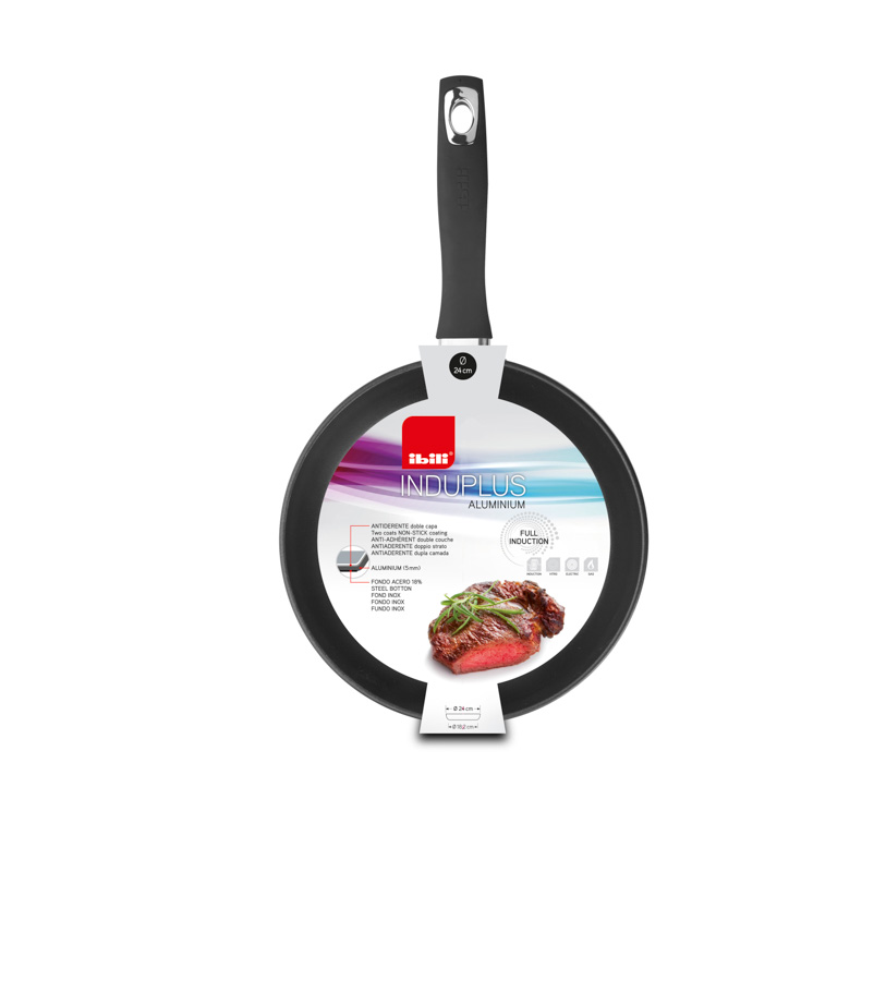 La poêle New Induplus est fabriquée en aluminium pour induction avec un manche en bakélite soft touch. Spéciale pour vitrocéramique et induction et adaptée à toutes les cuisinières. Le fond diffuseur full induction permet un chauffage uniforme et rapide pour des économies d'énergie. Avec système antiadhésif 2 couches haute qualité, libre de PFOA. Grâce à ses 5 mm d’épaisseur, c’est une pièce DURABLE et INDÉFORMABLE.