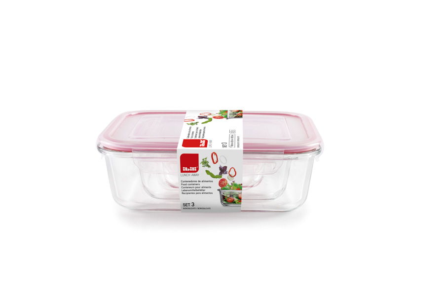Contenedor de alimentos rectangular. Borosilicato. Max. 450° - Min. -40°. Junta de silicona.