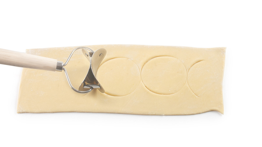 Cortador para ravioli redondo. Inox/madera de caucho