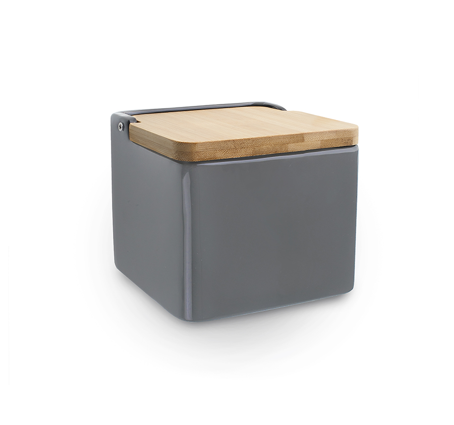Square Grey Salt Cellar Wooden Lid