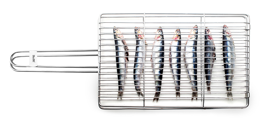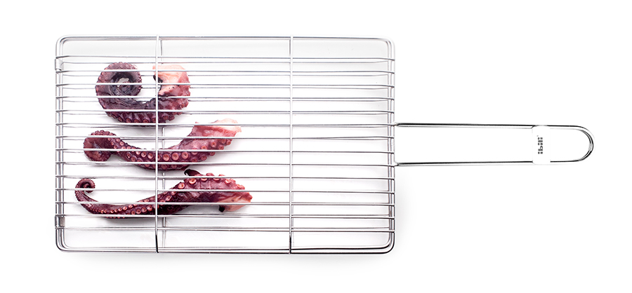 Double grill for sardines or other small fish, slices of salmon or albacore tuna, octopus legs, prawns, crustaceans or even sausages or hamburgers
