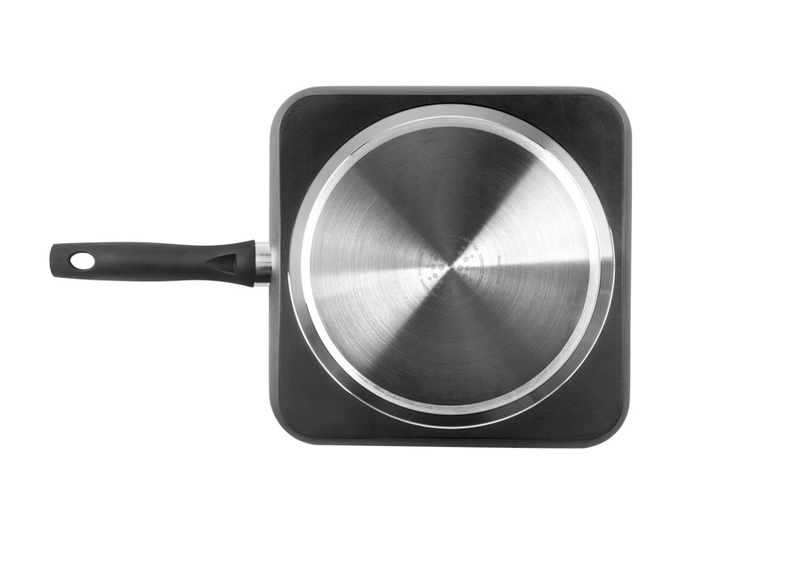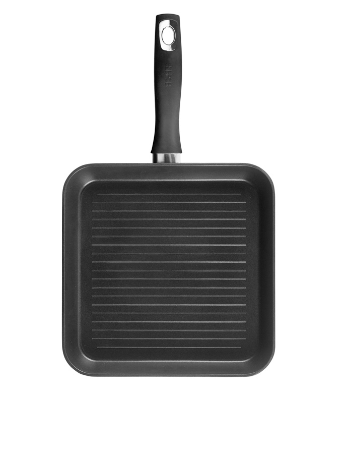 The New Induplus grill is made of induction ready aluminium and has a Bakelite soft-touch handle. It's specially designed for vitro-ceramic and induction, but it's compatible with all cooktops. Because it has a full induction diffuser bottom, it heats up quickly and evenly to save energy. It has 2 layers of a high quality, PFOA free non-stick coating. Its 5 mm thickness makes it a DURABLE and NON-DEFORMABLE piece.
