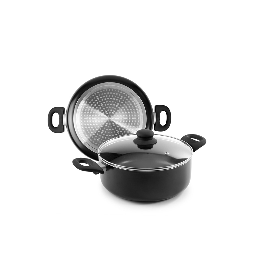 The high quality deep Inducta frying pan with a handle is made of induction ready aluminium. It's specially designed for induction, but it's compatible with all kinds of cooktops. It has a double layer PFOA free non-stick coating. It has a Bakelite soft touch handle.