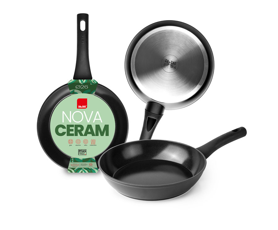 The Copper frying pan is made of induction ready aluminium with a copper style finish and a riveted tubular stainless steel handle that doesn't get hot. It's specially designed for induction, but it's compatible with all cooktops. Its full induction diffuser bottom with a complete 18% steel disk is perfect for heat conductivity and heats up quickly and evenly to save energy. It has 3 layers of a high quality non-stick coating that is PFOA free and low in CO2 emissions. The Copper series stands out for its durability and high corrosion resistance. It's dishwasher safe and easy to clean.