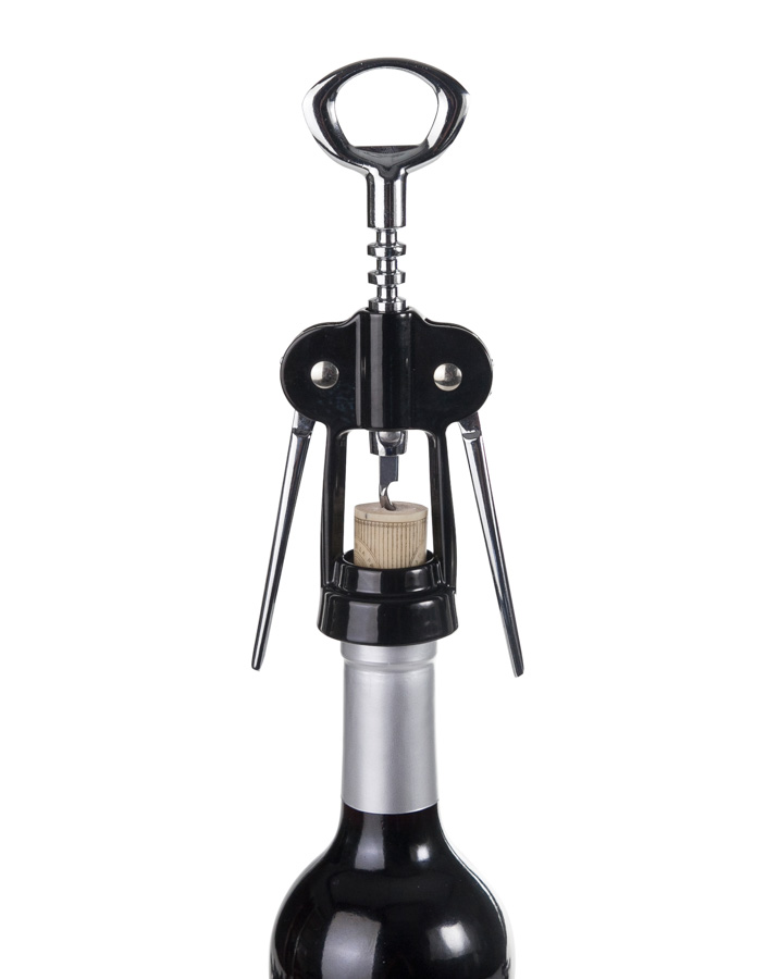 Sacacorchos doble palanca metálico. Sacacorchos de acero inoxidable, con palancas para extraer el corcho de las botellas de vino en un solo movimiento. Acero inoxidable.