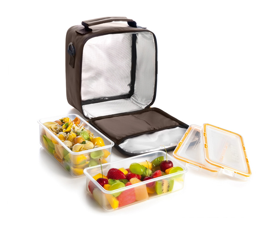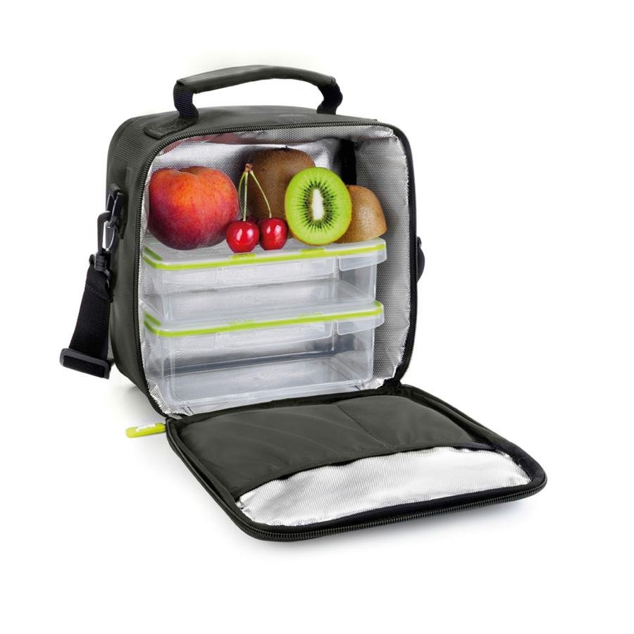 Porta-alimentos Lunch Away Peach. 100% herméticos.5Lt.2 Contenedores.Interior forrado con aislante térmico. Correa bandolera desmontable. 2 bolsillos. Separador de espacio para fruta, bebida o lacteos. POLYESTER.