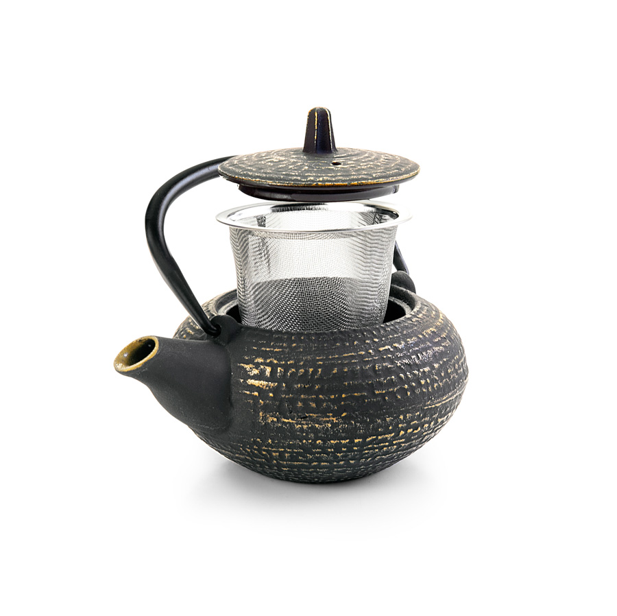 Cast iron teapot. Elegant design teapot that keeps the tea hot for a long time, which allows you to keep the teapot on the table without having to move to reheat it. 18/10 stainless steel filter + enamelled interior.