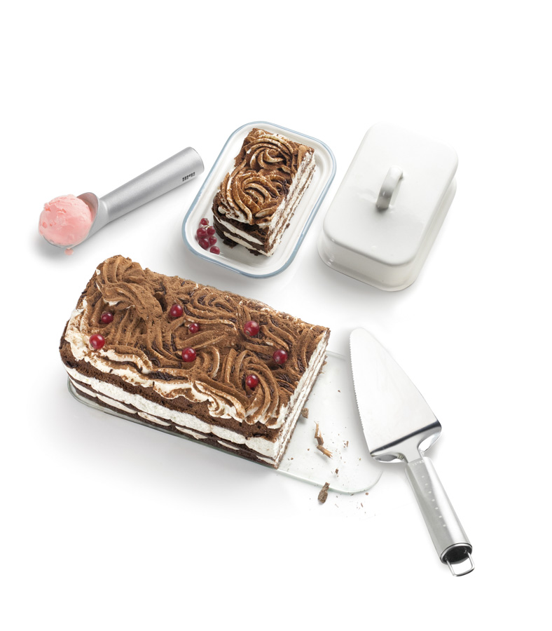 Cake can be cut directly on the high temperature resistant glass base so it can be left on the base until it has been eaten.