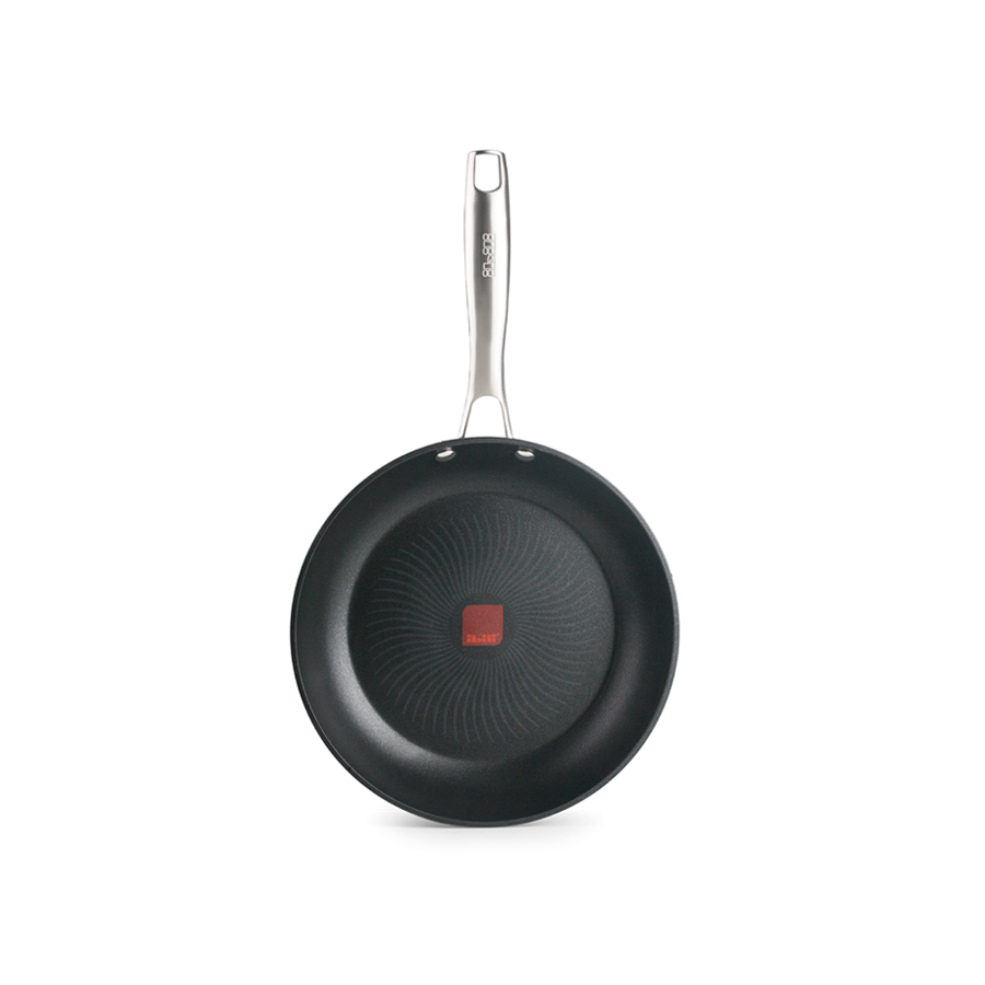 Forged aluminum frying pan with PFOA-free Xylan Plus non-stick coating.