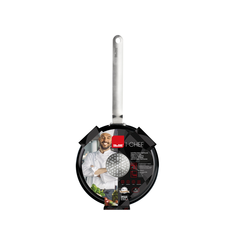 La Sartén I-Chef para tortillas I-Chef está fabricada en aluminio para inducción con mango de acero inoxidable.