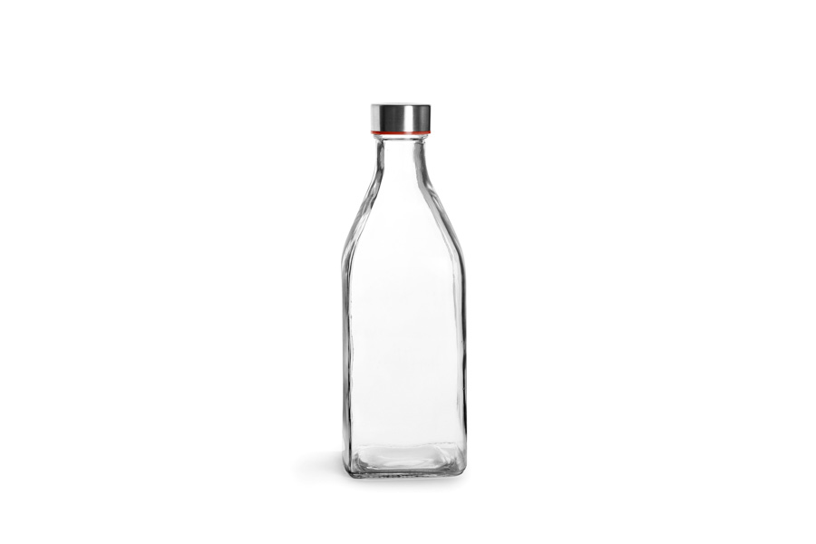 Cristal. Tapa inox.Esta botella reutilizable es perfecta para sustituir las botellas de plástico de usar y tirar, contribuyendo además a mejorar el medioambiente.Botella transparente con un elegante diseño.