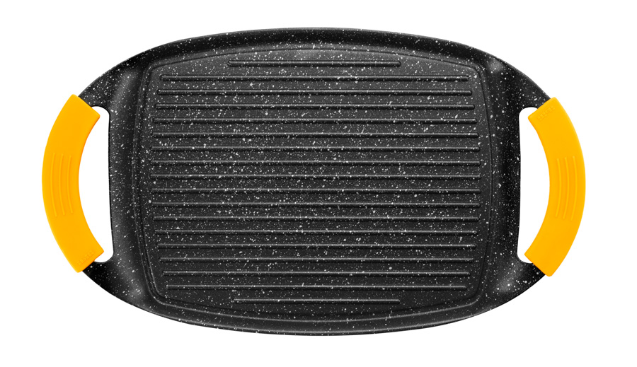 La Plancha Grill Basic Stone está fabricada en aluminio fundido para inducción e incorpora asas de silicona desmontables. Es especial para inducción y apta para todo tipo de cocinas, tmabién horno. Su fondo difusor full inducion, permite un calentamiento uniforme y rápido para un ahorro energético. Lleva revestimiento de 2 capas de antiadherente estilo piedra, libre de PFOA y baja en emisiones Co2. Las asas de silicona desmontables protegen del calor y resistenten hasta 240°. Sus 5 mm de espesor, hacen de ella una pieza DURADERA e INDEFORMABLE. Perfecto para cocinar todo tipo de pescados, carnes o verduras a la plancha reduciendo aceite y grasas. Una comida sana y ...¡lista en unos minutos!