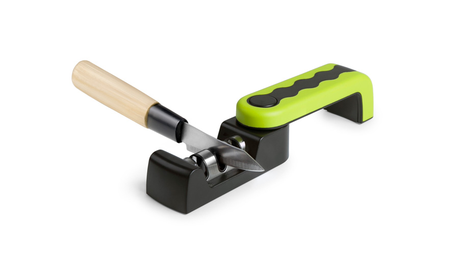 Afilador plegable diseño único con asa giratoria.Elegante, compacto y práctico.fácil de usar, se pliega para su almacenamiento. Mango ergonómico para un manejo fácil y seguro. La base antideslizante proporciona estabilidad y seguridad.Inox + ABS.