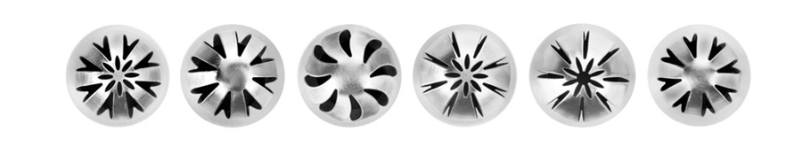 Set de 12 boquillas que permiten formar flores complejas de glasa o buttercream de forma muy fácil. Solo tienes que colocar la boquilla dentro de la manga pastelera o acoplarla a un adaptador de boquillas adecuado. están fabricadas en acero inoxidable de una sola pieza, sin uniones, locual permite formar flores perfectas.