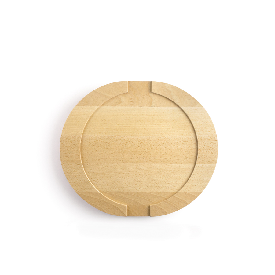Base de madera de haya diseñada para platos de hierro fundido, protegiendo superficies y añadiendo un toque elegante.