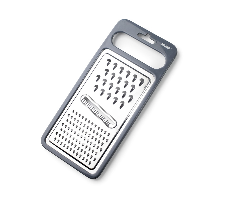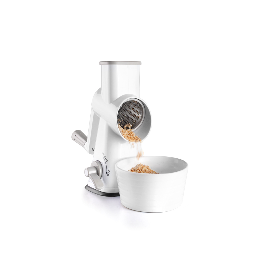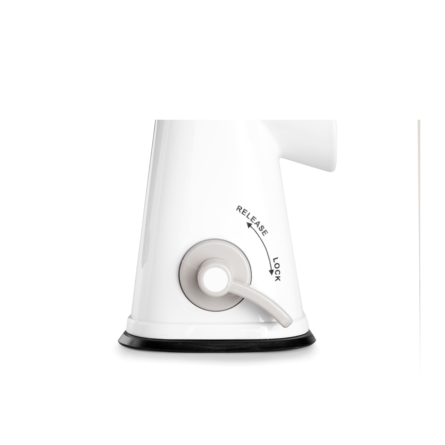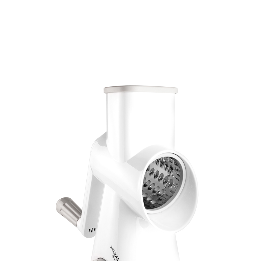 Rallador giratorio con 3 cuchillas intercambiables para rodajas, rallado grueso y rallado fino.
